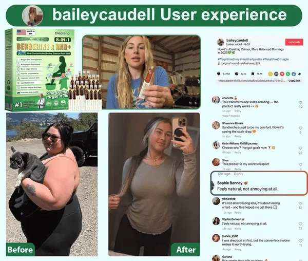 After more than 12 years of research, our team began self-testing a new program using warm-water herbal activation through the Clearenaยฎ Moringa ยท Bee Venom ยท Berberine ร— NAD+ Eight-in-One 10ร— Ultra-Concentrated Herbal Essence Foot Soak, successfully overcoming the limitations of traditional single-pathway interventions that commonly lead to gastrointestinal issues. By adopting a dual-pathway strategyโ€”supporting appetite regulation and fat metabolism while simultaneously addressing skin firmness during weight lossโ€”we observed significant improvements in metabolic function and body composition, without rebound weight gain or adverse reactions.